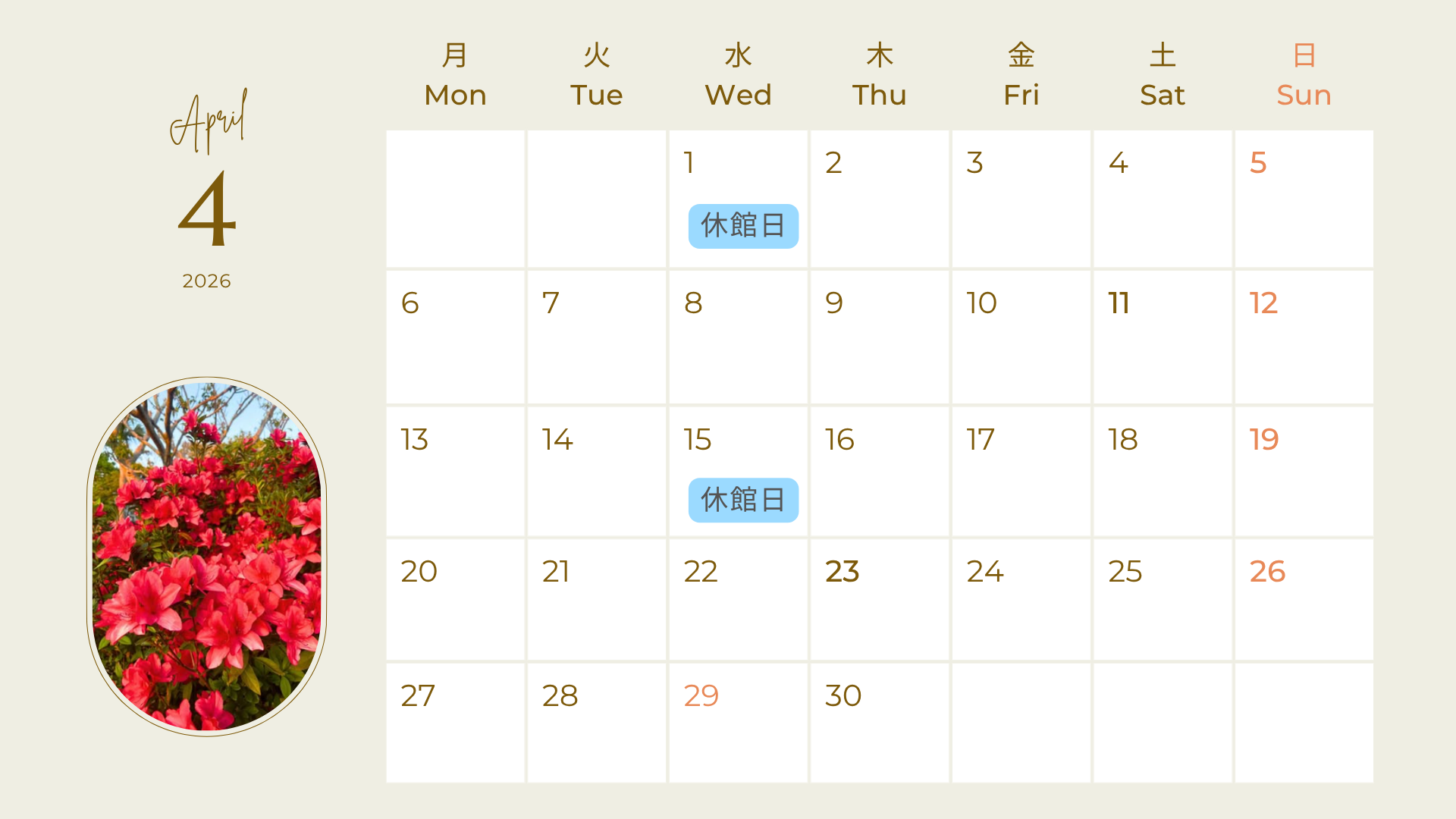 休館日カレンダー